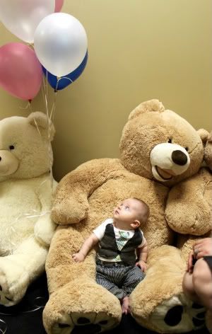 I guess it's normal for a baby's growth to slow down at some point. This is the first time that Will hasn't been ready for the next size clothes right at the age that they're for. Well, not that there's been many size changes so far. He was never really in newborn clothes, but at 3 months he had outgrown most of his 0-3s and was in 3-6s. Now he's still fitting into a lot of 3-6s, and just a some 6-9 onesies and some 6-12 pjs. He has yet to double his birth weight, but we have to cut the kid a break since his birth weight was 8lbs 14oz. I think the whole doubling birth weight by 4 months thing is ridiculous, sure a baby that weighed 6lbs could gain 6lbs in 4 months, that' 1.5lbs a month on average, but Will would have had to gain over 2lbs each month. It's more of the percentiles I'm concerned with, but I probably shouldn't be. At birth, I think he was 75th% now he's 25th%. His doctor says he's doing good, especially since both I and Shawn are on the small side. I was a big baby though.