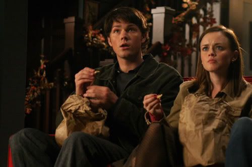 Okay, so I very often get told that I look like Alexis Bledel, who plays Rory on Gilmore Girls. I even have a picture of her on my myspace and many of my friends don't notice that it's not me. Well today I saw a Dean! In the English and Literature hall this guy walks out of the room beside mine and he looks almost just like Jared Padalecki (who played Rory's boyfriend Dean on the show), he was quite possibly even as tall as Jared (who is 6'4" I think). If I see him again, I must request a picture. Very shocking, high anticipation for next encounter.